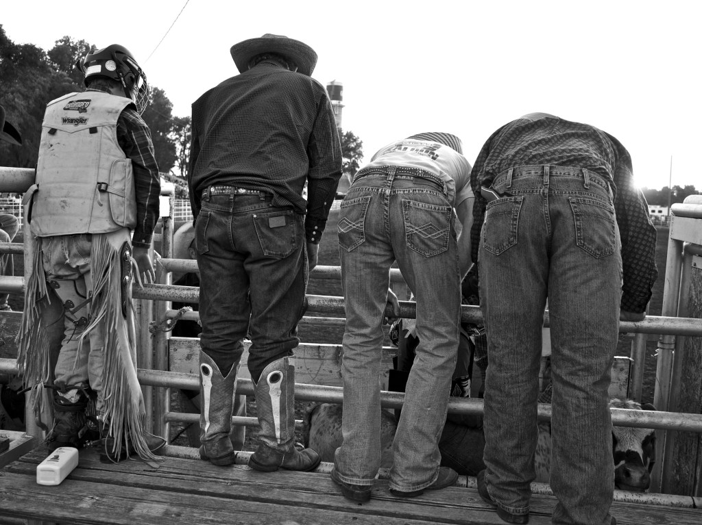 Bull riding is a dangerous sport, and also the most exciting, so it always comes last in a rodeo. Boots, jeans and cowboy hats are almost required attire for everyone, not just those helping out. The rider has his helmet, protective vest and fringed chaps. A local cowboy walking down the street of my adopted city of Málaga would be as out of place as a Flamenco dancer at this Pottawotomie County Fair in Northwest Kansas.